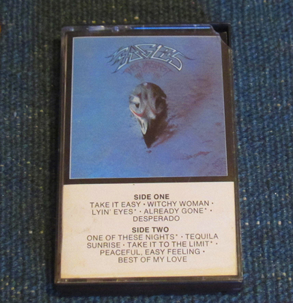 Which all makes me think of an outdated music media format: the cassette, and one in particular. I got rid of most my cassettes (accumulated in the 80’s) a long, long time ago. I replaced some with CD’s or digital versions, or just donated or threw others away. I kept a small handful, however. Those that I felt a special attachment to. Those that, even though I now had the music in another, more modern format, the physical artifact itself had significance in my history. Yes, I know, attachment to physical things is the antithesis of enlightenment. But, some “things”, especially from our youth, we hold on to. A favorite toy, a book (dented and maybe scribbled in before we knew better), or in this case, the Eagles’ Their Greatest Hits 1971-1975 cassette.