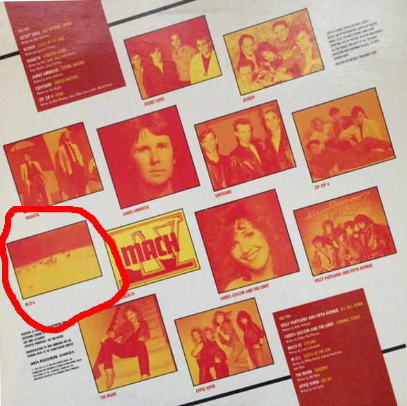I recently bought a used record put out in 1985 by Toronto radio station Q107 as part of a series they did back then called Homegrown. A mix of hair metal bands, barroom rock and new-waveish acts, most forgotten now, Homegrown Volume Seven also contains a song called “South of the Sun” credited to our mystery group, who went by the name (at least for this album) of M.O.I.