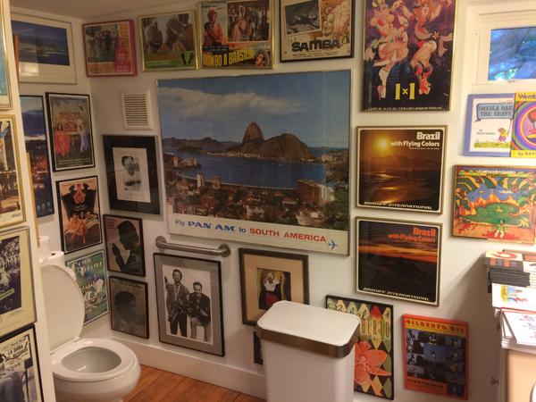You may even find a shrine to the romance of Brazil and Brazilian music in a bookstore bathroom…
