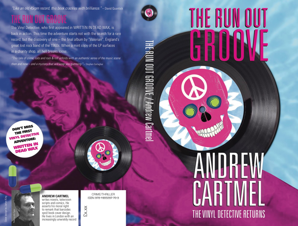 Readers of this blog will have come across my enthusiastic reviews of two of the books in Andrew Cartmel‘s Vinyl Detective mystery series (Written in Dead Wax and The Run-Out Groove.) The protagonist of the series is a sleuth who gets hired to find particular rare records. Along the way his searches end up involving danger, adventure, and intrigue. Think a somewhat more domesticated James Bond for record collectors.  He gets help on his cases from his love interest the smart and alluring Nevada, and friends Tinkler and Clean Head (yes, those are really their names). So far, the books have taken us into the worlds of classic jazz, psychedelic rock, and big band music. Cartmel is currently working on book #4, to be called Flip Back, which will be partially set in the folk-rock and psychedelic folk scene of the late 60s/early 70s.